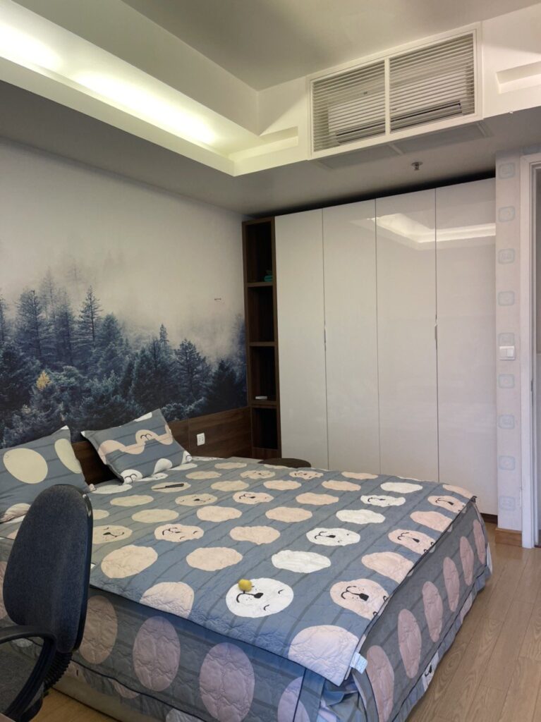Second bedroom with queen beds and closet. In the building, residents have free access to a gym, swimming pool, 24h security, reception desk.