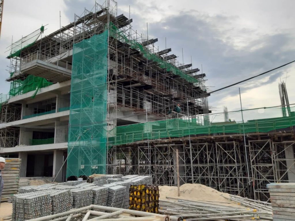 Đơn vị thi công cùng hàng trăm công nhân vẫn đang làm việc ngày đêm để thực hiện mục tiêu bàn giao đúng thời giạn cho nhà đầu tư.