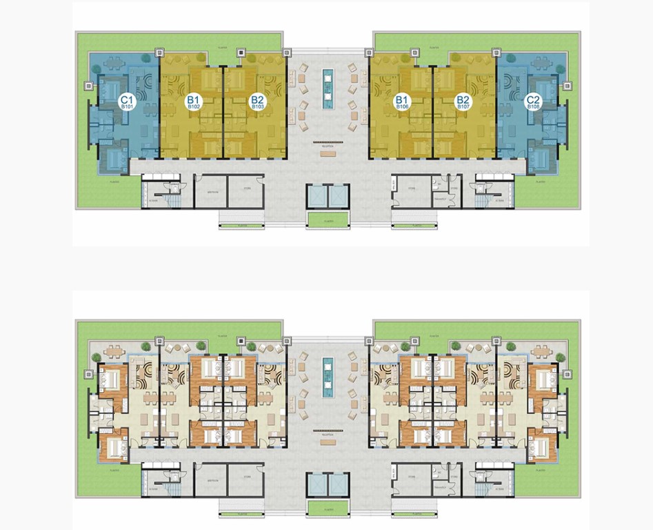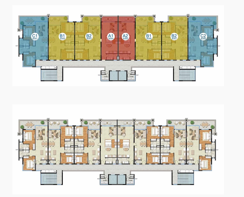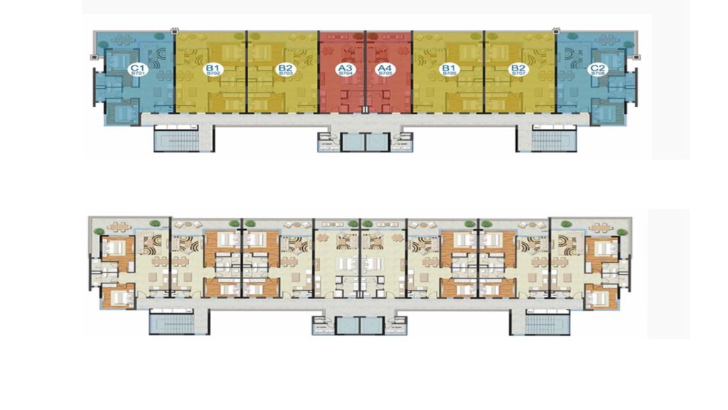Các căn hộ tại The Ocean Suites được bố trí thông minh. Kiến trúc và thiết kế của dự án giúp tối ưu hóa không gian sử dụng căn hộ. Từ cách phân chia, kết hợp nhà bếp, phòng ăn hay phòng sinh hoạt chung đem đến không gian sống thoáng đãng. Mặt bằng tổng thể dự án bố trí số lượng căn hộ hợp lý.