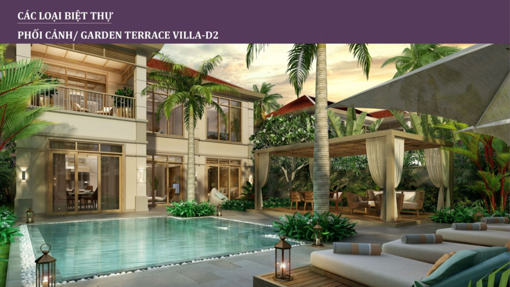 Được xây dựng phù hợp với nhu cầu sử dụng của đa phần khách hàng. Biệt thự 2 phòng ngủ Garden Terrace Villa gồm 40 căn với diện tích từ 370m2 đến 514m2. Để lại nhiều ấn tượng với thiết kế trang nhã mang hơi thở đương đại. Biệt thự đáp ứng đầy đủ tiện nghi, mang đến không gian sống thoải mái và bình yên cho gia chủ.