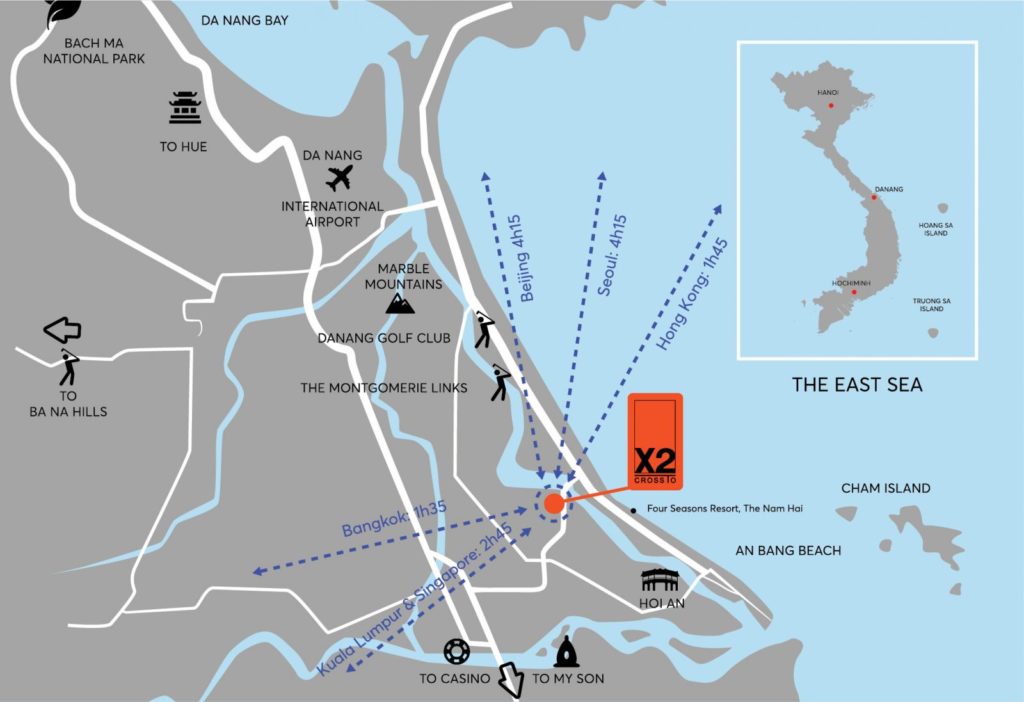 Chỉ cách phố cổ Hội An 7 phút đi xe, cách sân bay Đà Nẵng 20 phút đi xe và cách các địa điểm vui chơi khác chưa đầy 10 phút di chuyển, X2 Hội An Resort & Residence thật sự sẽ là sự lựa chọn hoàn hảo cho những người yêu thiên nhiên, những nhà đầu tư phát triển du lịch nghỉ dưỡng.