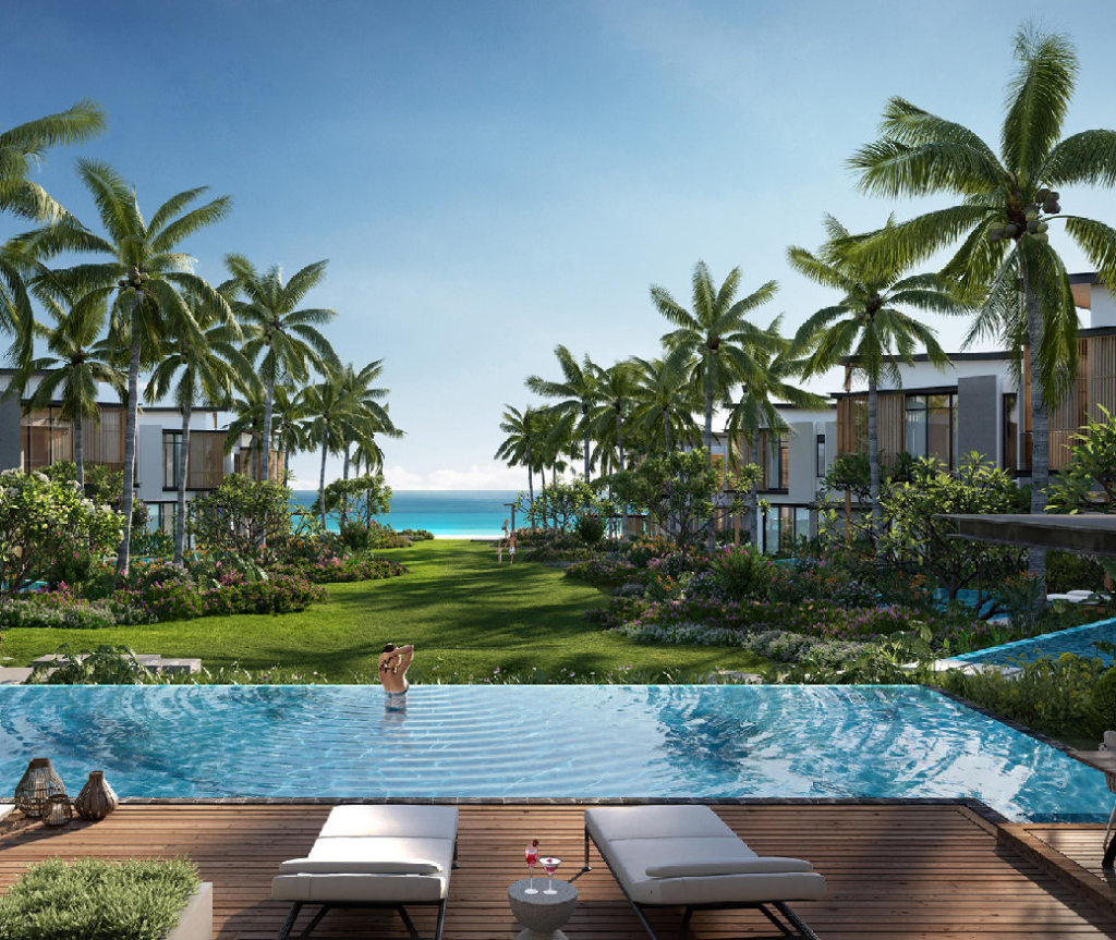 Quy mô 8ha bao gồm 63 biệt thự biển hạng sang và khối khách sạn hiện đại.