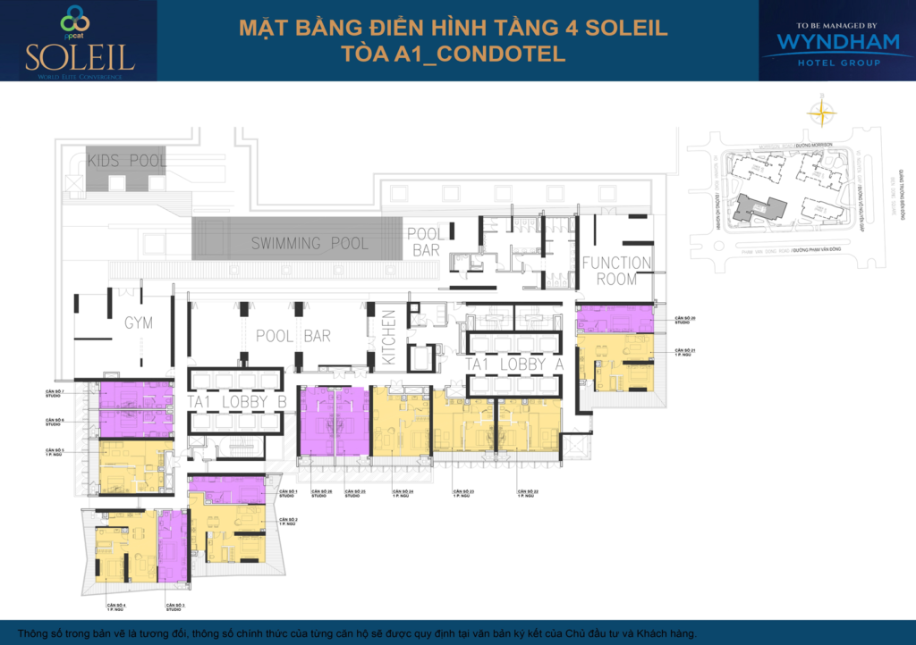 Căn hộ thuộc tòa A1 đều được tích hợp các tiện ích của toàn dự án Wyndham Soleil Đà Nẵng.