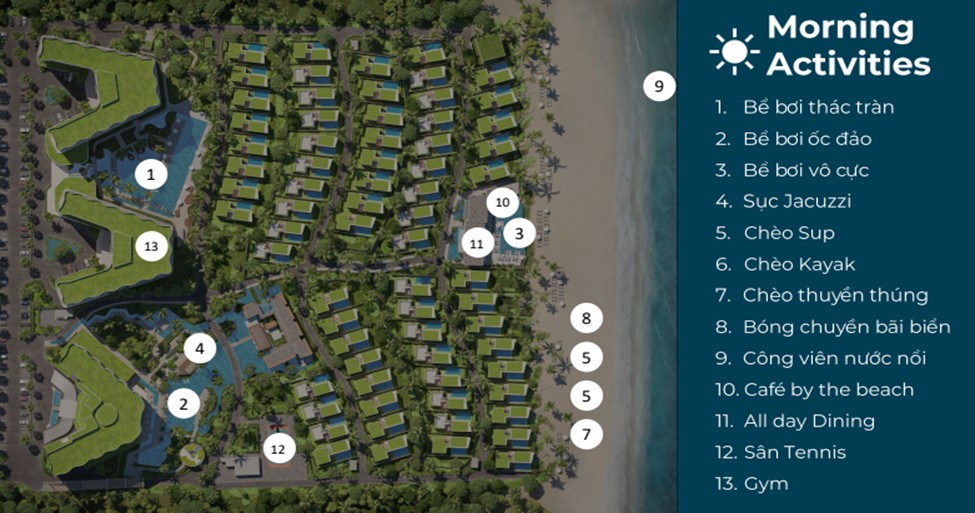 ⚜️ Hệ thống tiện ích: Bể bơi thác tràn, Beach Club, Thảm cỏ đa năng, Vườn hoa bốn mùa,… đã hiện hữu ⇒ Sẵn sàng đi vào hoạt động.